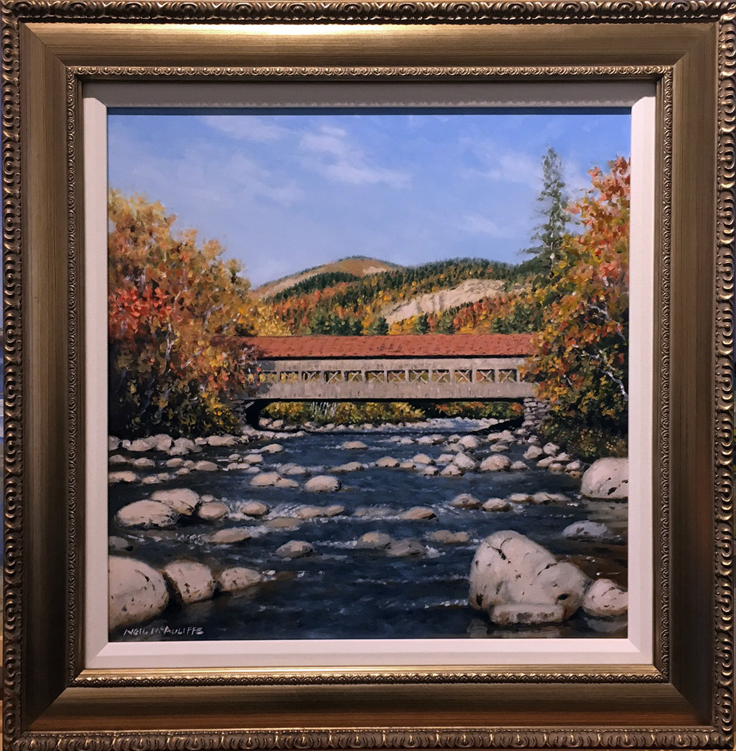 "Covered Bridge, Kancamagus, New Hampshire" by Neil McAuliffe - Realist Landscape Oil Painting
