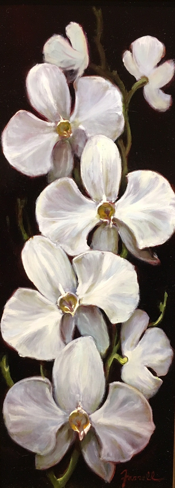 "Cascade (White Orchids)" by Sean Farrell - Vibrant Still Life Oil Painting