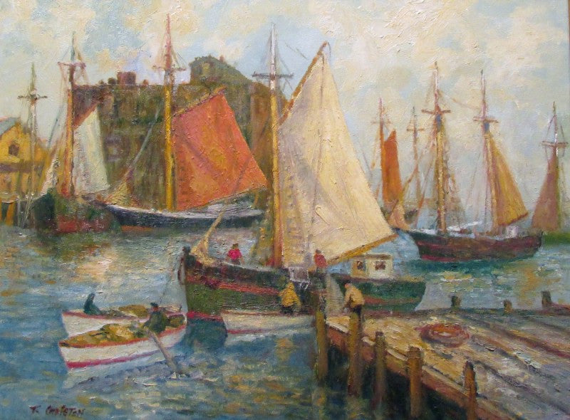 "Drying the Sails" by Thomas Carleton - Marine Oil Painting