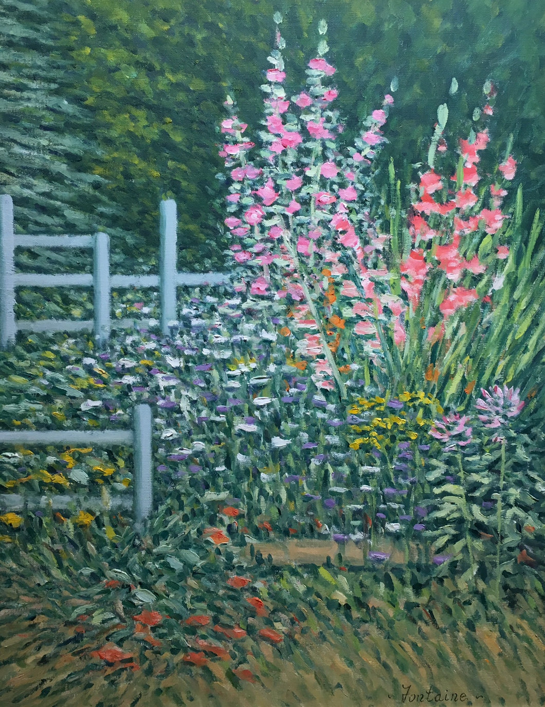 "Mixed Garden" by E. Joseph Fontaine - Antique Impressionist Oil Painting