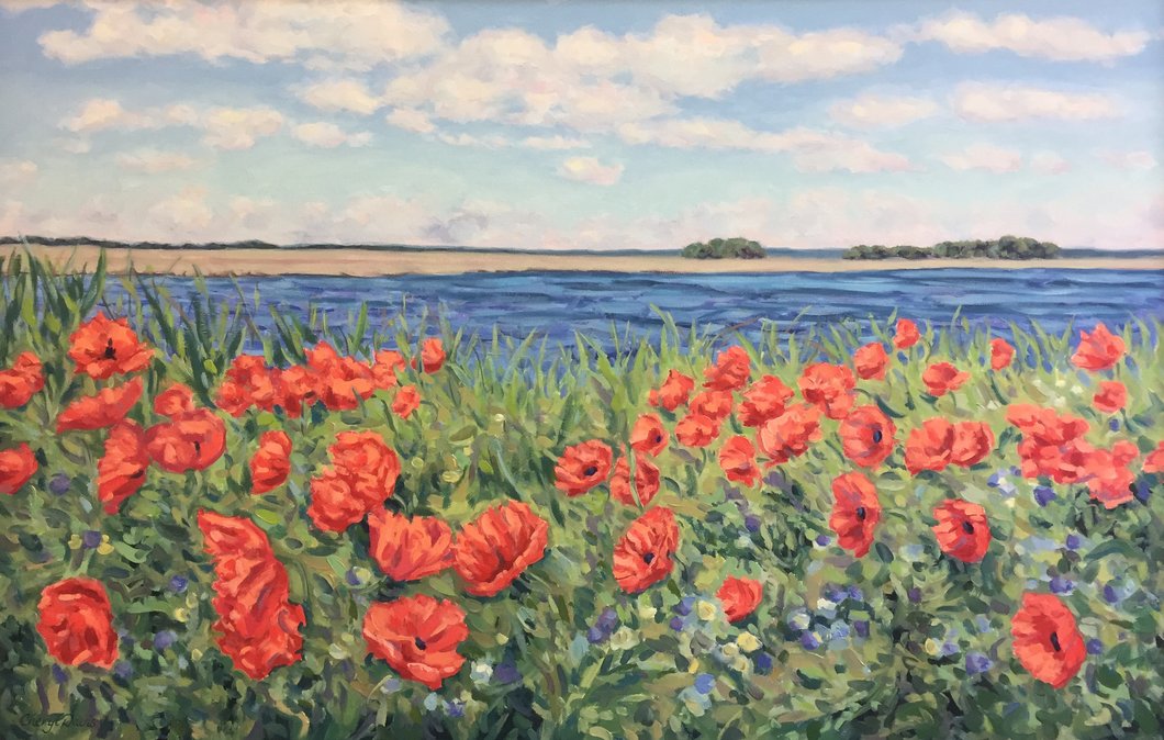 "Seaside Poppies" by Cheryl Davis - Landscape Painting