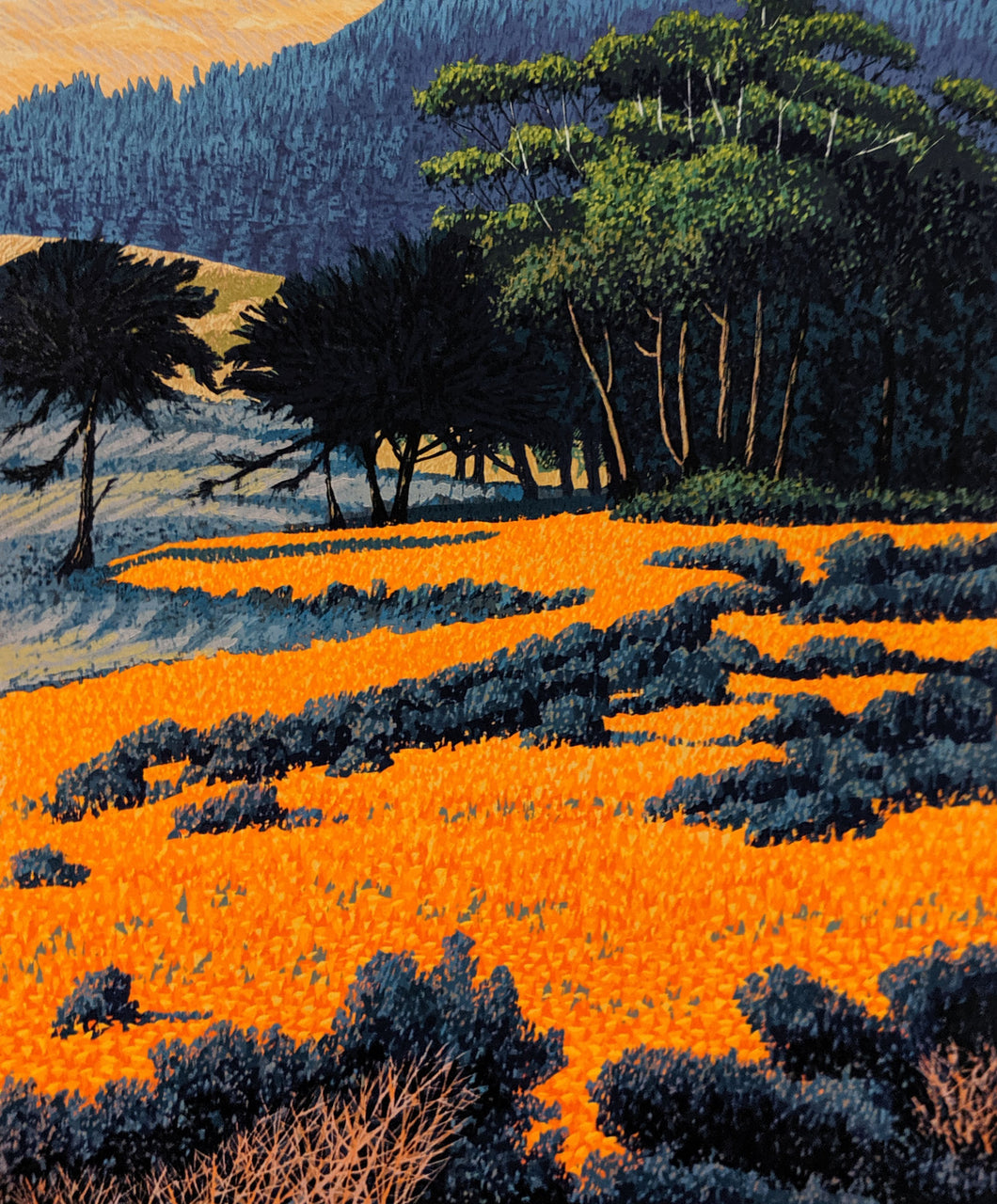 "Carmel Poppies" by Gordon Mortensen - Limited Edition Reduction Woodcut Print