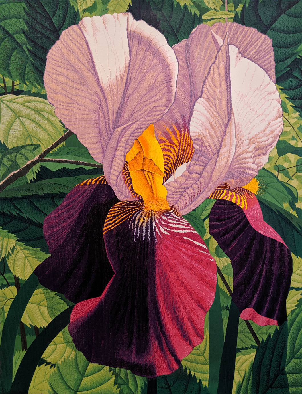 "Double Iris" by Gordon Mortensen - Limited Edition Reduction Woodcut Print