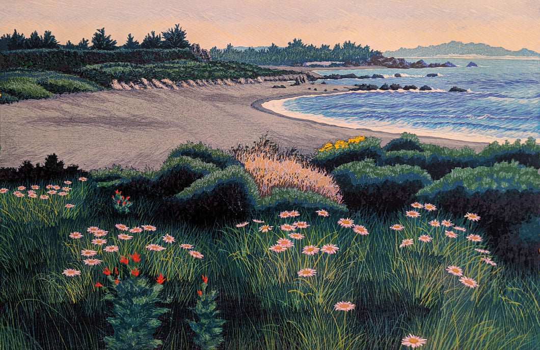 "Dusk, River Beach" by Gordon Mortensen - Limited Edition Landscape Reduction Woodblock Print