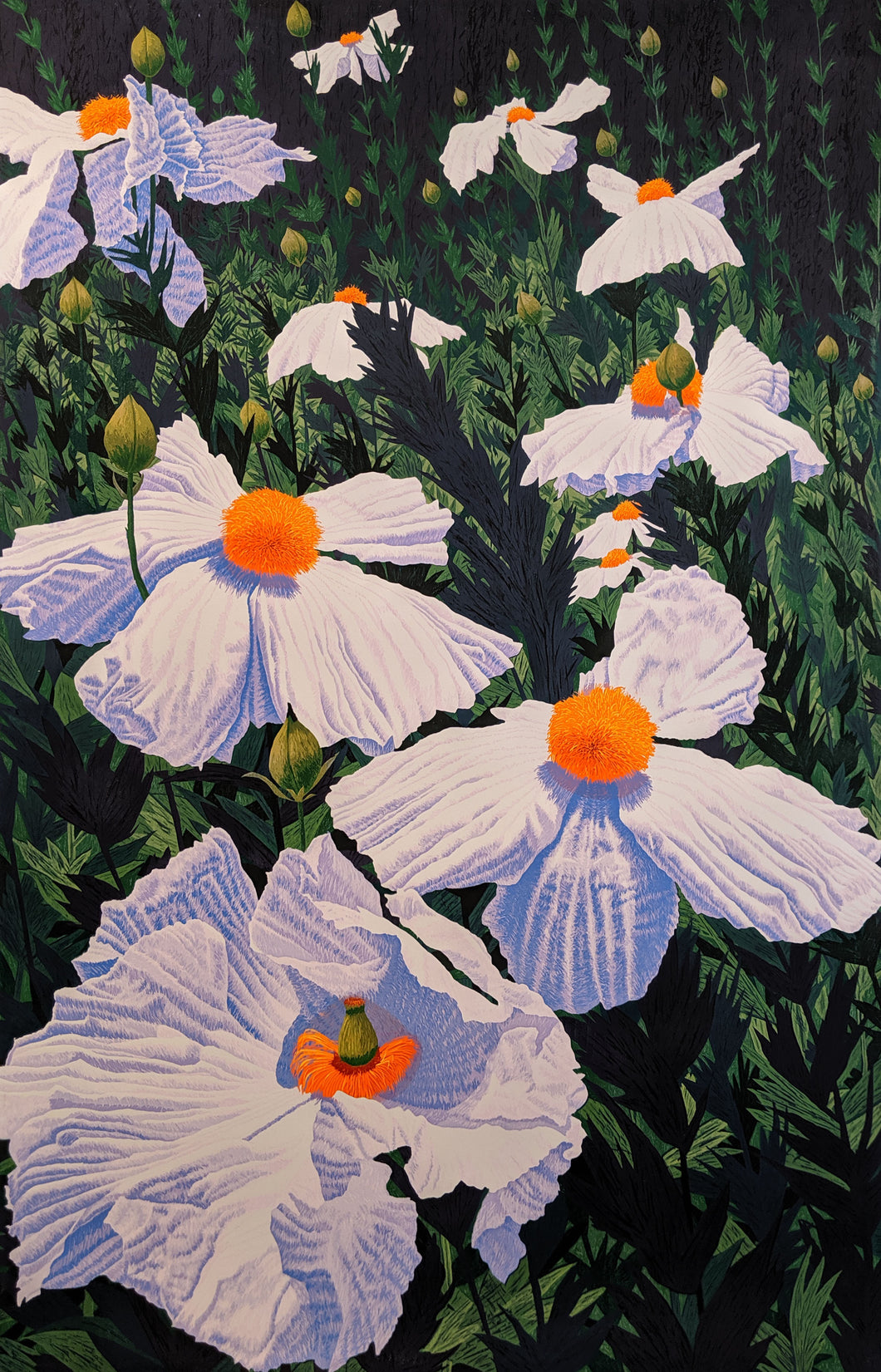 "Matilija Poppies" - Reduction Woodcut Print on Paper by Gordon Mortensen