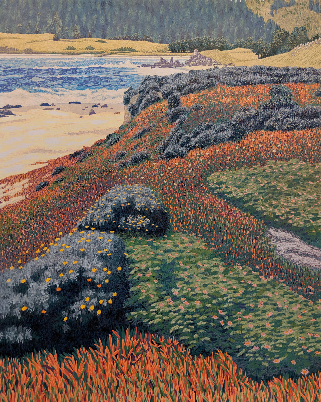 "Monastery Beach" - Reduction Woodcut Print on Paper by Gordon Mortensen