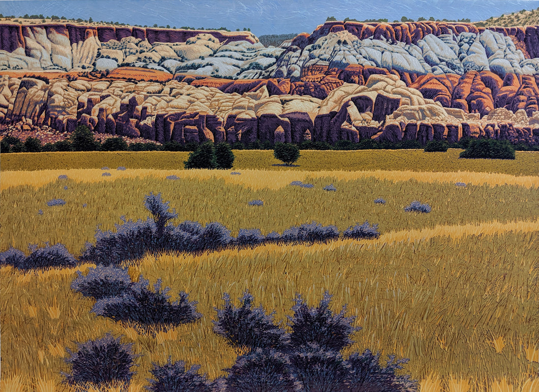"Near Ghost Ranch" - Reduction Woodcut Print on Paper by Gordon Mortensen