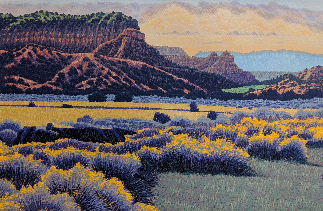 "New Mexico" - Reduction Woodcut Print on Paper by Gordon Mortensen