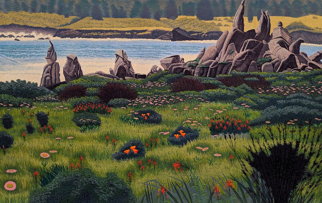 "Spring at Carmel Meadows" - Reduction Woodcut Print on Paper by Gordon Mortensen