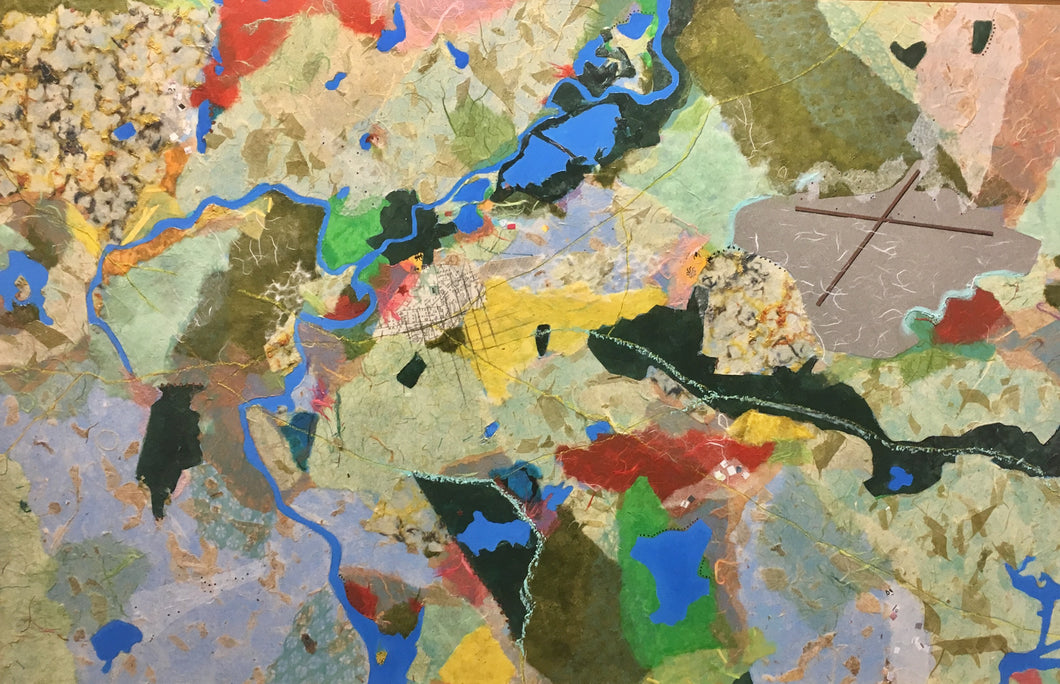 After a long period of creating trompe l’oeil pieces and designing large scale sets for theater, Remmi currently find herself painting abstracts and map-like landscapes. She has found that integrating collage techniques -- and the layering inherent to that method--creates a sense of juxtaposition that challenges the norms of visual perception while representing locations from Cape Cod to Fenway park.