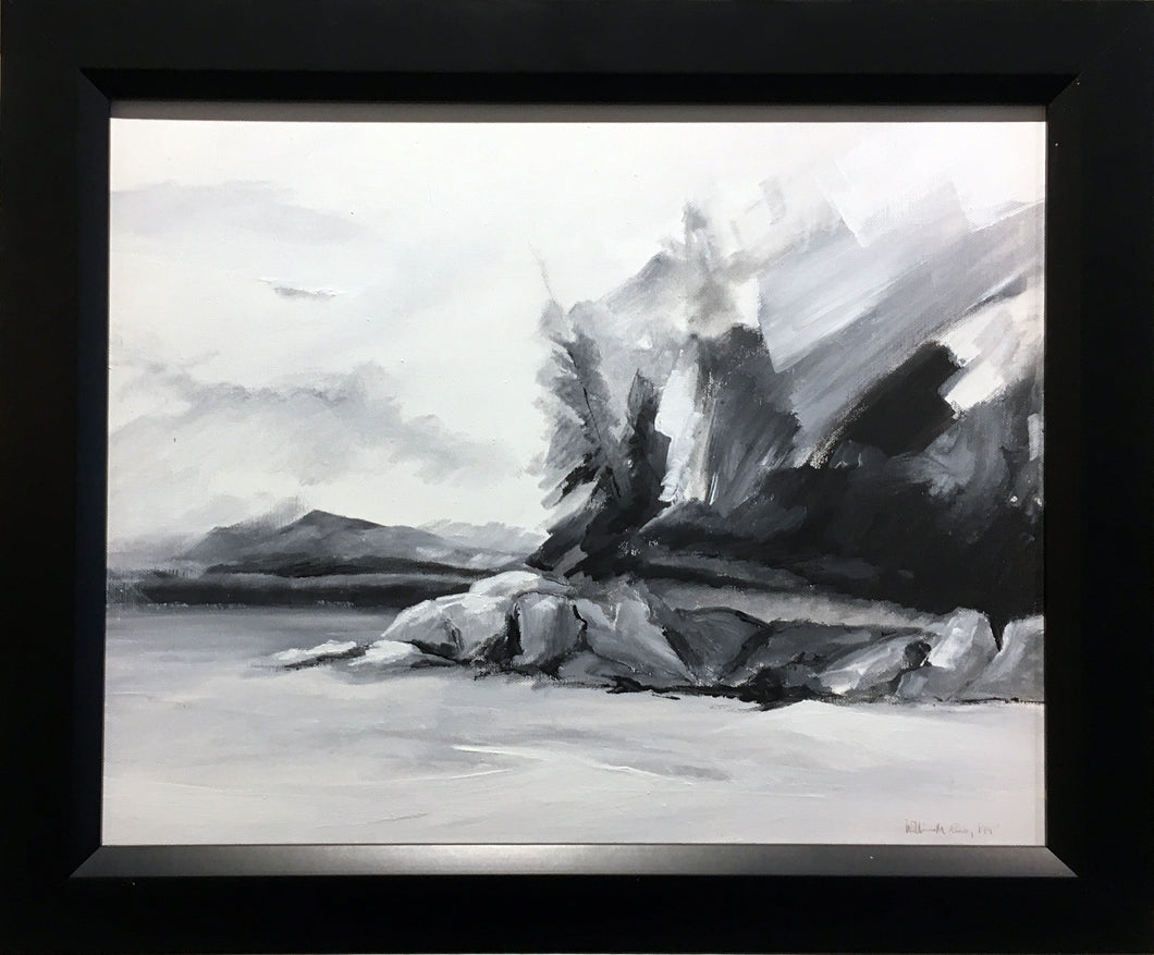 "Shoreline" by William Crosby - Black and White Abstracted Landscape Painting