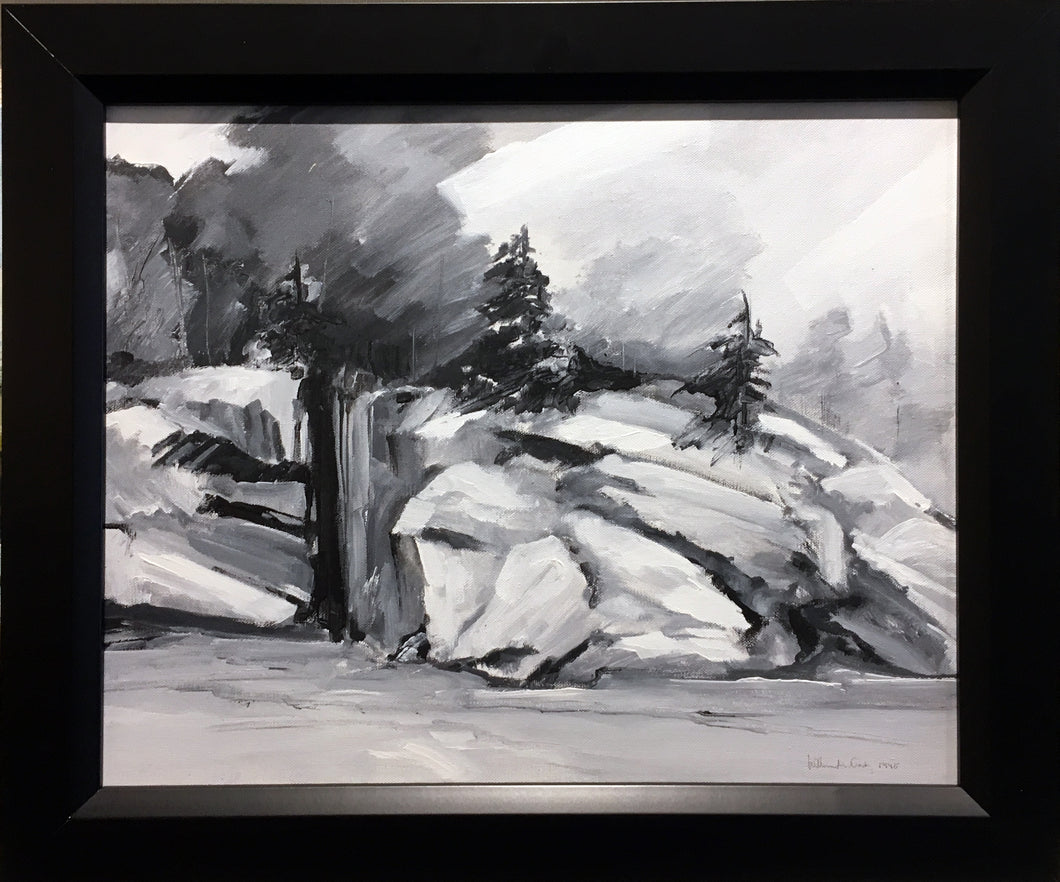 "Valcour Rocks" by William Crosby - Black and White Abstracted Landscape Painting